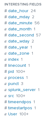 Now that looks much better. CASE( ) is used when we want an exact match (case-sensitive), which produces all the login failures. We can do things like track total count or in our case aggregate the usernames and look for trends. Splunk didn’t carve out the user or IP field automatically so we will have to do that using field extraction.
