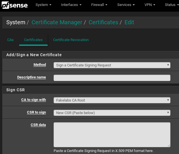 Step 5: Copy and paste the output into the pfSense CSR data form field: