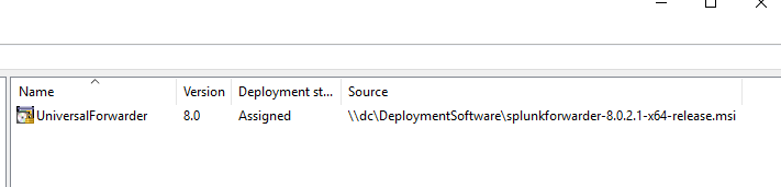 Once you are complete you should see the name of your package and the UNC path to the Splunk UF installer. This UNC path needs to be accessible by all hosts that you intend to deploy the UF on.