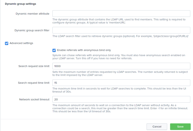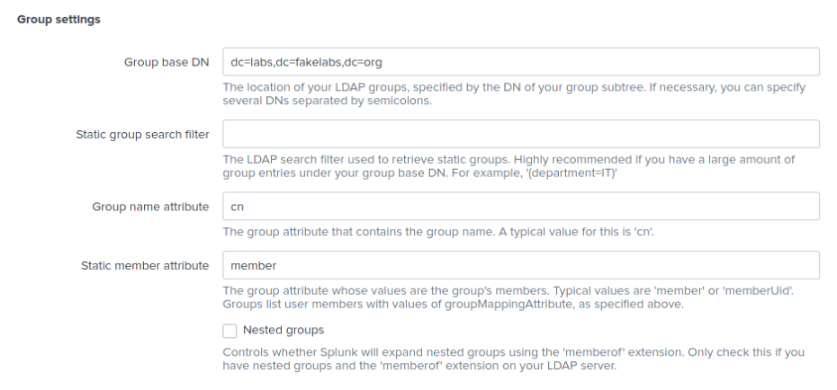 Configure LDAP settings in Splunk Web UI